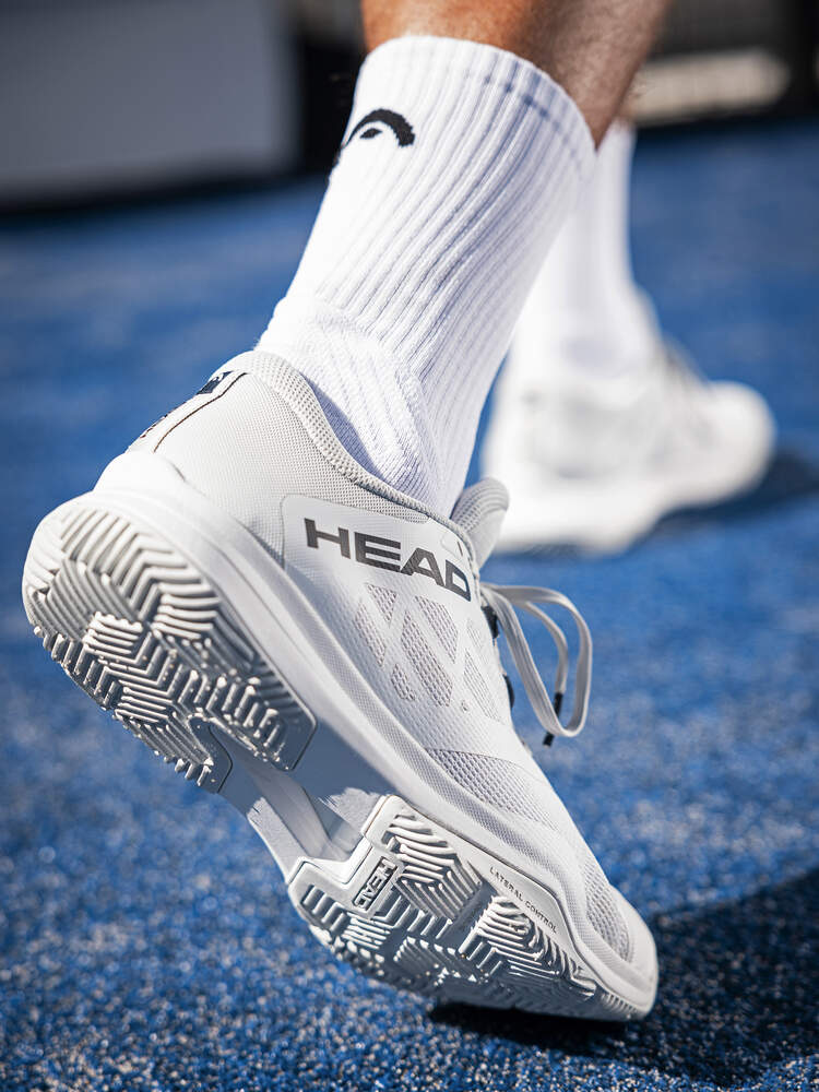 Specifically designed for the fast, 360-degree movement on a padel court, the MOTION TEAM 1.5 PADEL MEN shoe supports and enhances your footwork in all directions. An advanced and padel specific outsole tread – which was developed with leading turf provider Mondo – allows for fast, smooth, 360-degree movement. For extra comfort, the upper has been updated with a new, breathable mesh, along with a padded tongue and soft materials that are used in all areas of the shoe. For even more stability, the shoe has a 3D TPU midfoot shank, HEAD Lateral Control technology and a lacing system with the HEAD Lockdown Strap. The cushioned midsole adds to the comfort while the Drift Defense technology with a TPU toe cap adds durability. Innovative performance is combined with a premium, modern design.