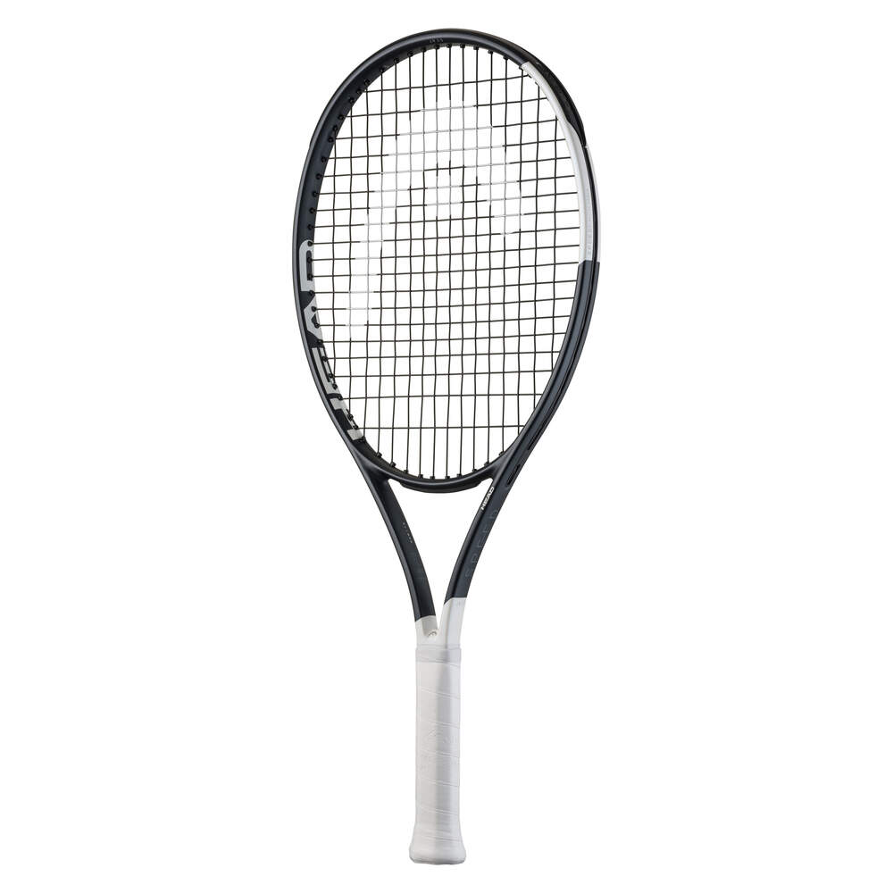 A lightweight, 25-inch version of the bestselling MP model in the adult SPEED series, the SPEED JR 25 TENNIS RACQUET is made for ambitious kids aged from 8 to 10 who have a fast game. Young tennis players who are inspired by HEAD ambassador Jannik Sinner, who endorses the adult SPEED series, will appreciate how this junior frame is easy to handle. Just like the adult SPEED models, this racquet has been upgraded with Hy-Bor – a state-of-the-art material mix that is mainly used in the high-tech aerospace industry – introduced to the shaft to enhance the perceived stability and the signature solid impact feel. Metallic colors and a matte finish put a fresh and contemporary twist on the SPEED series’ iconic black and white design.